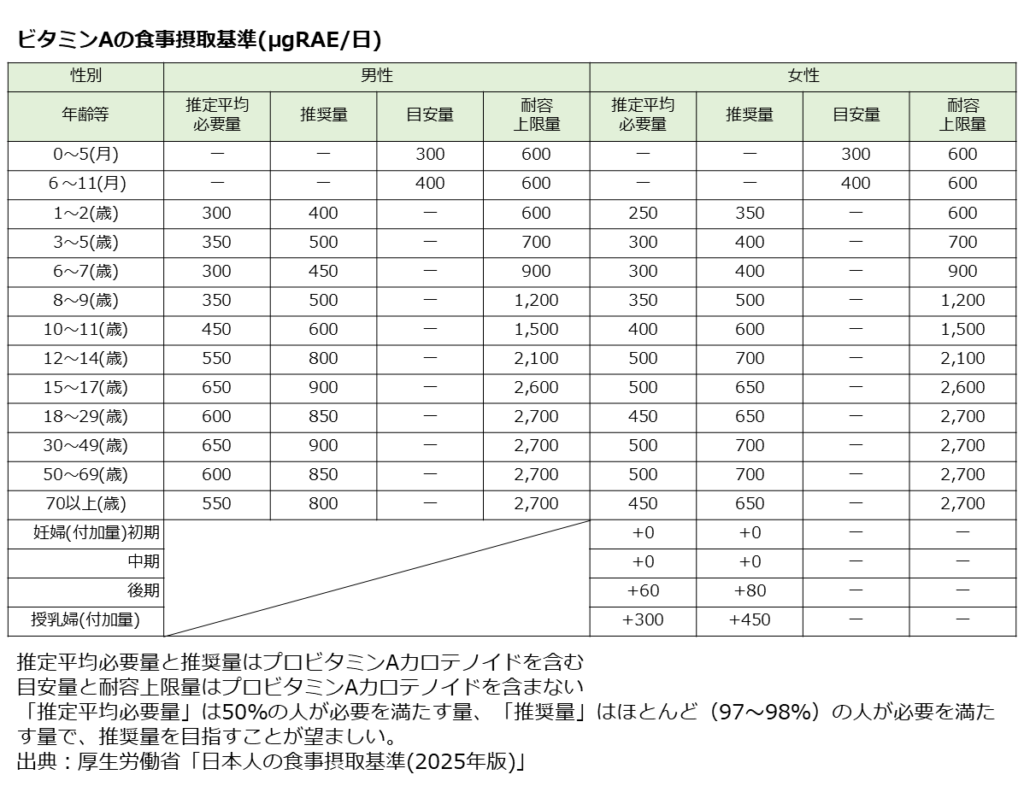 出典:日本人の食事摂取基準(2025年版) ビタミン(水溶性ビタミン)